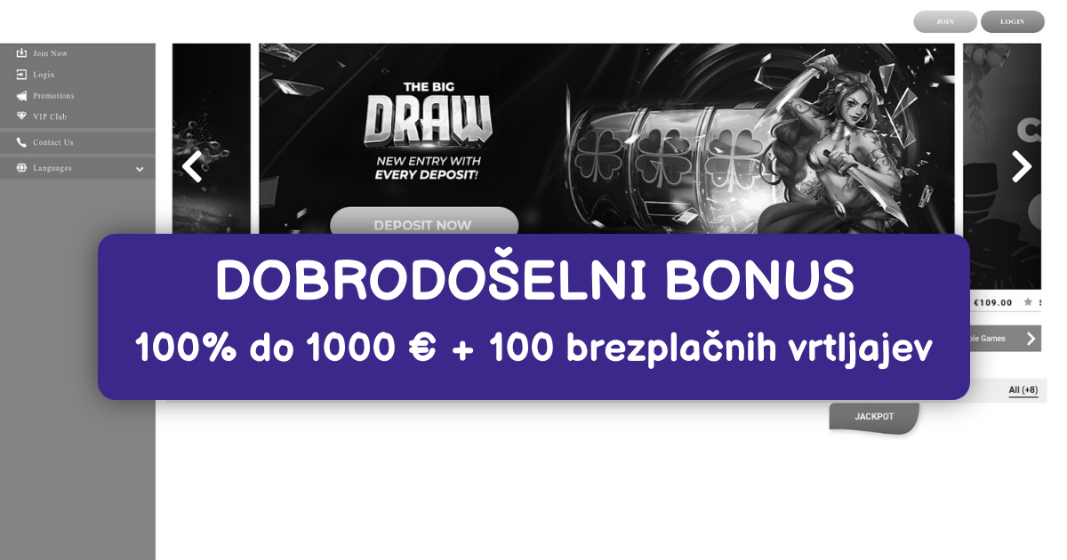 Bonus brezplačnih vrtljajev: 100 brezplačnih vrtljajev do $19 pri prvih 3 pologih